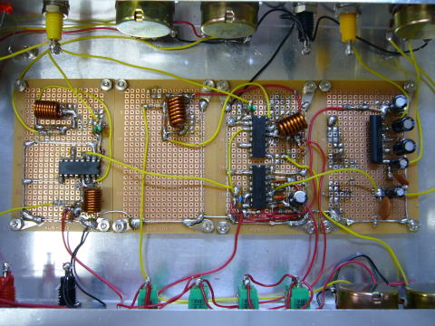 です.1の低周波のシンセサイザーが基本です.どれも遠坂俊昭著「PLL回路の設計と応用」(CQ出版社)に載っている回路です.実際に自作した回路の写真は以下の通りです.