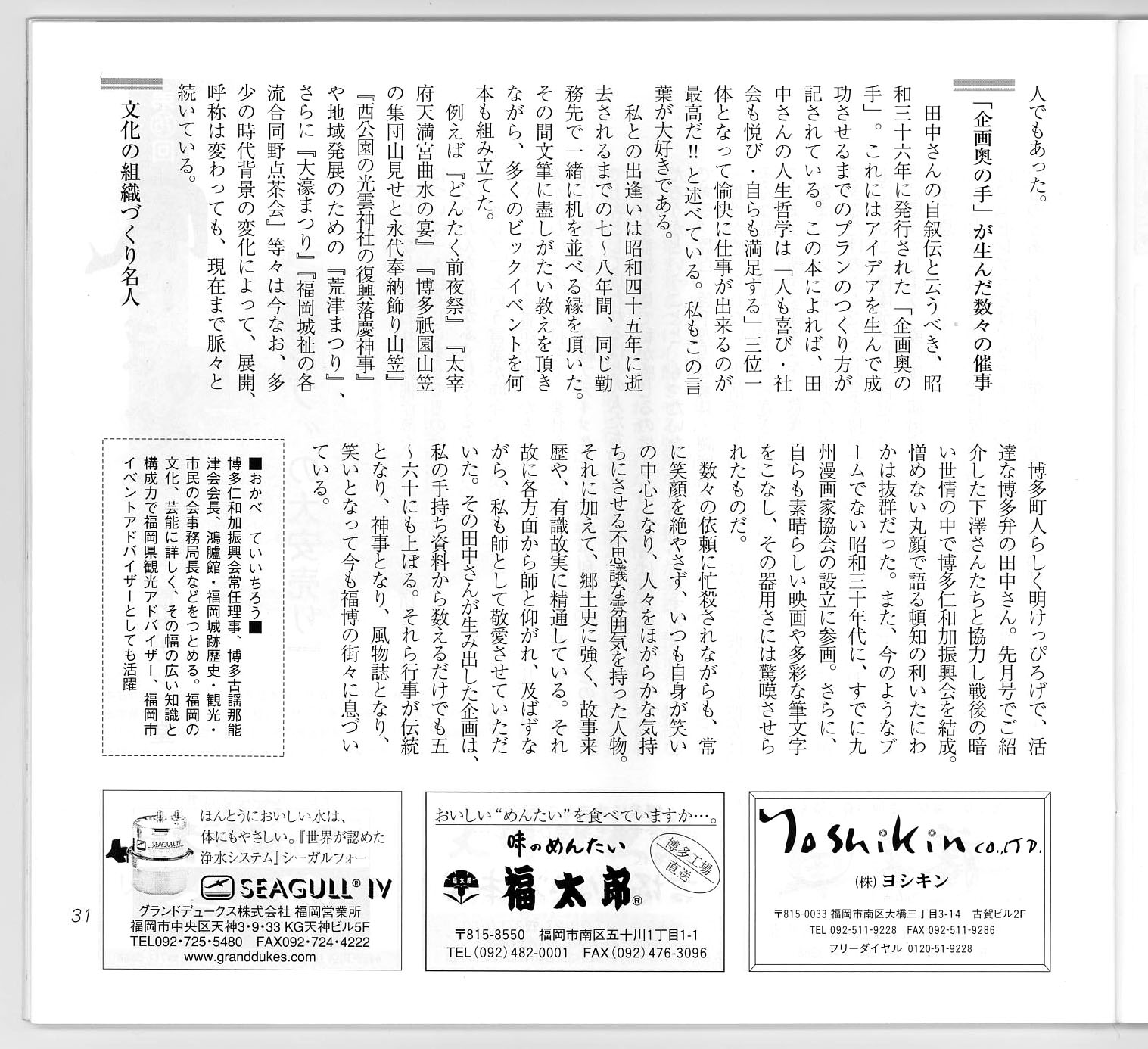 田中諭吉雑誌記事(月刊はかた2005年3月号より)