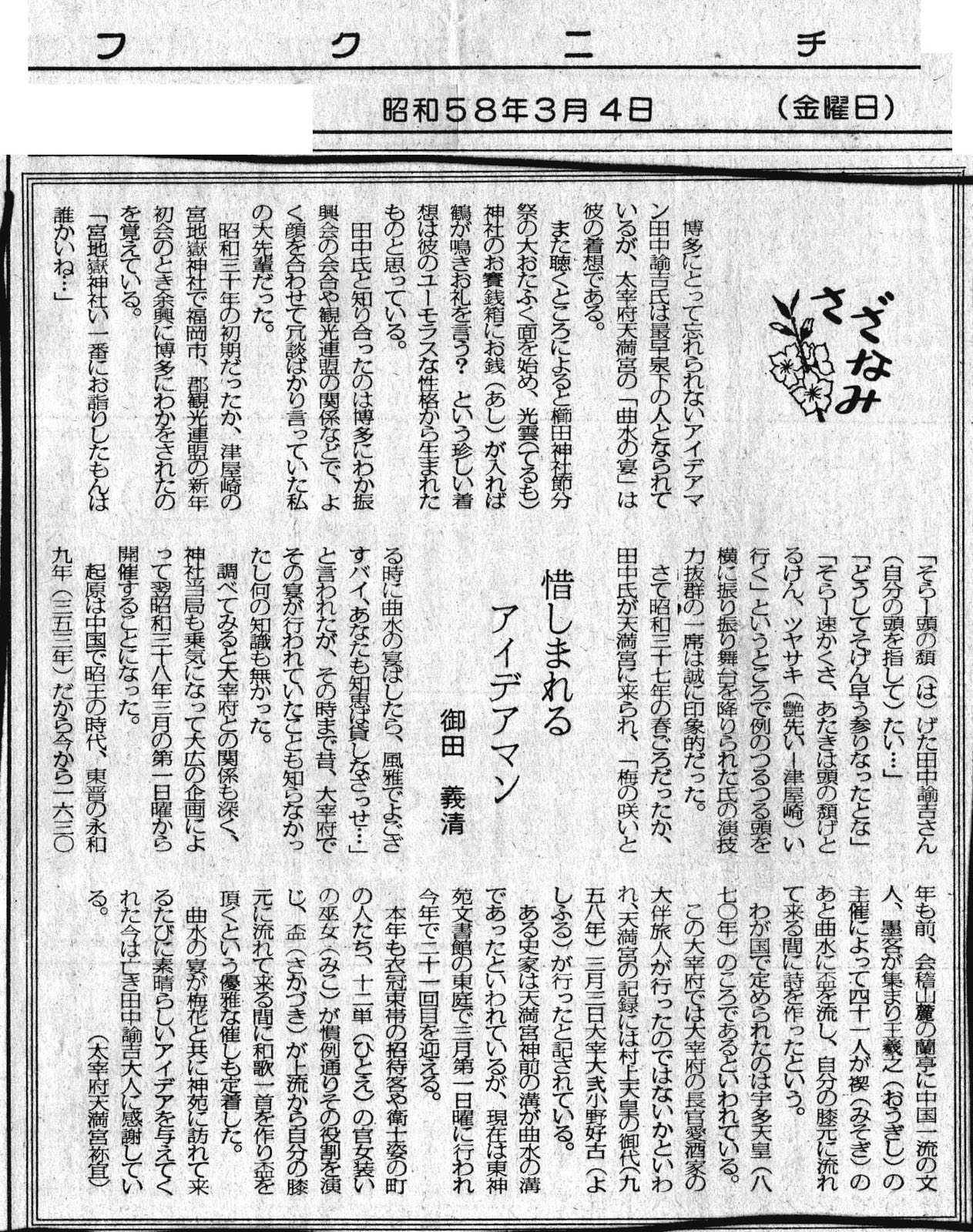 田中諭吉新聞記事(フクニチ1983年3月4日より)