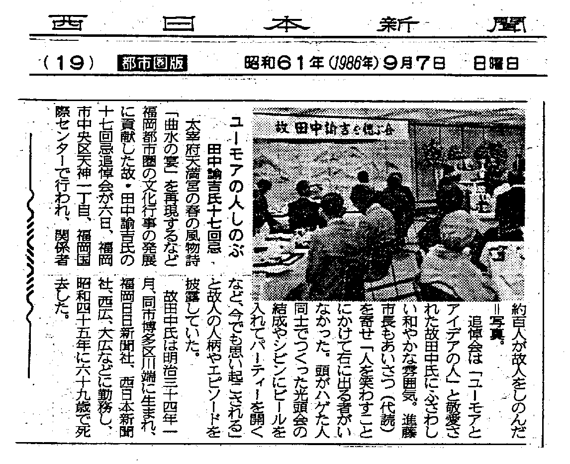田中諭吉新聞記事(西日本1986年9月7日より)