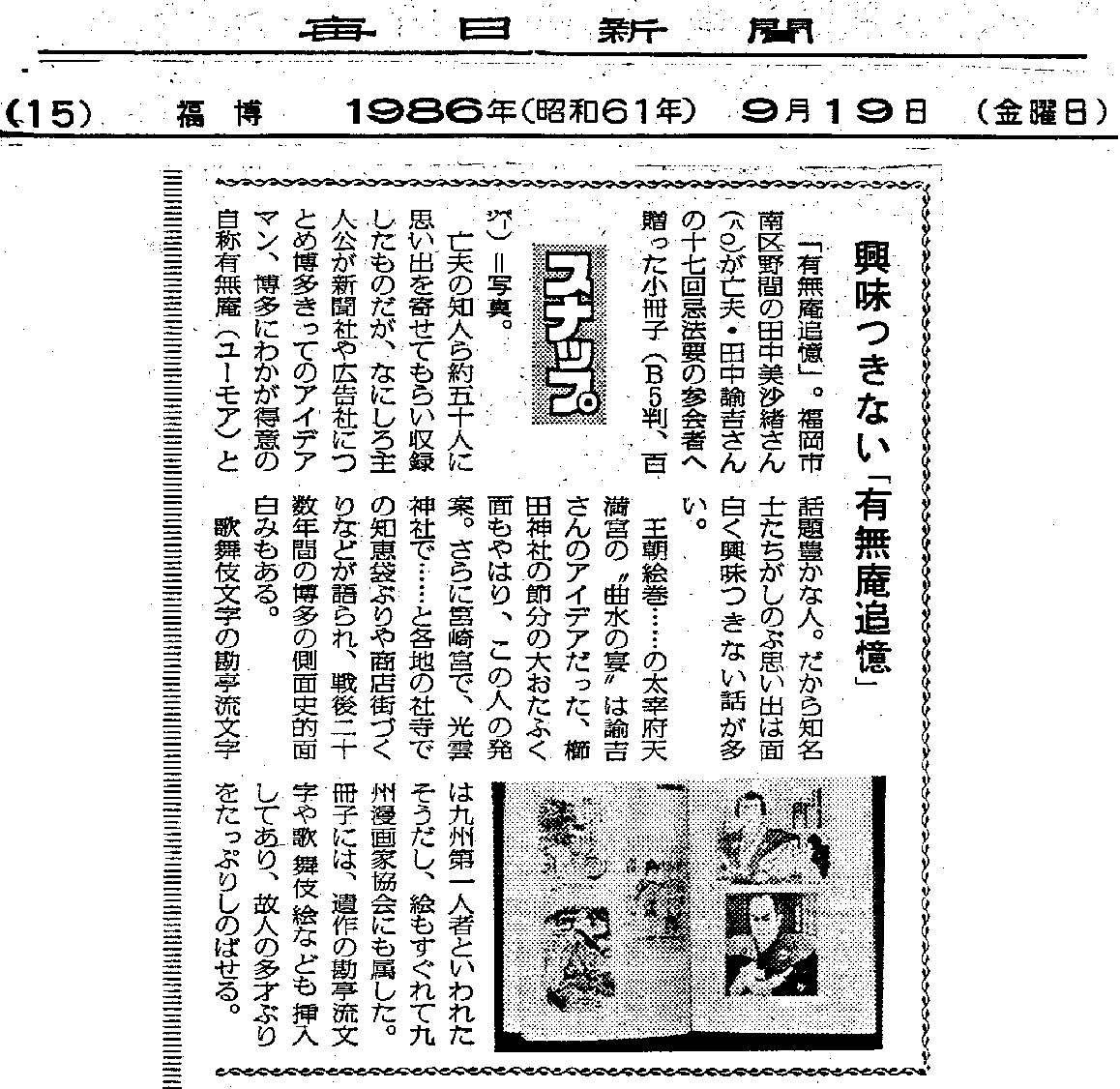 田中諭吉新聞記事(毎日1986年9月19日より)