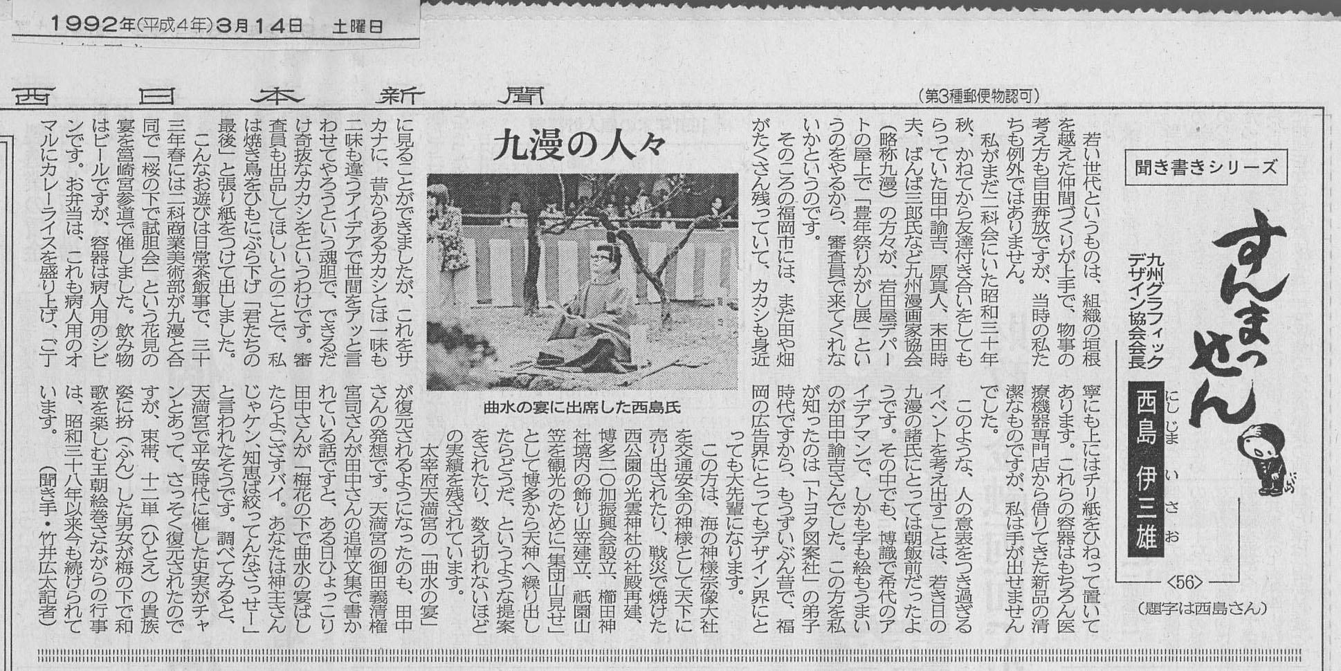 田中諭吉新聞記事(西日本1992年3月14日より)