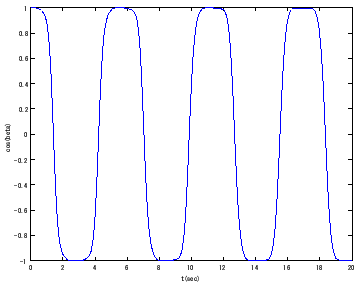 c軸がz軸となす角の余弦の時間変化. -1から1までで変化してい
