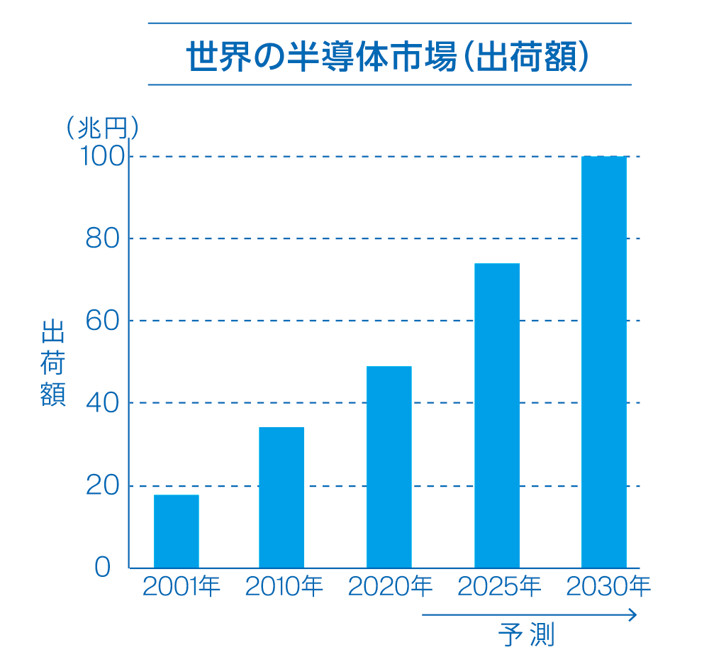 「半導体」をご存じでしょうか。一般的には電子機器内部にある半導体チップのことで、スマートフォンやパソコン、生活家電のほか、最近は自動運転などの技術発展を受けて自動車にも高度な半導体デバイスが搭載されています。ほぼすべての電子機器には半導体が使われていて、通信や物流など、現代社会の豊かな暮らしの基盤は半導体なしで成り立ちません。このため半導体はすべての産業の基礎であり「産業の米」とも呼ばれています。
