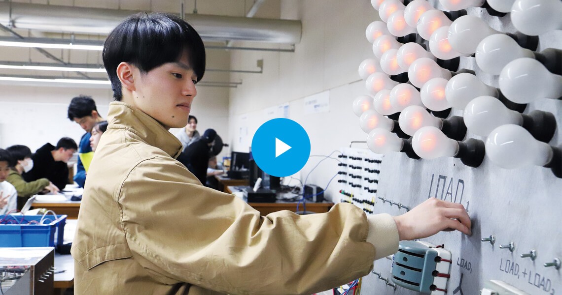 「電気主任技術者」は、さまざまな事業の場で有資格者が必要とされる国家資格。本学科ではその認定要件を満たすカリキュラム編成を行っています。