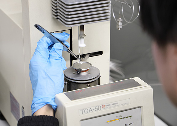 熱天びん(熱重量分析装置)を用いて、3Dプリンターで作製した高分子材料の耐熱性を評価する。