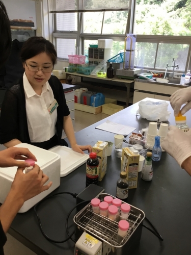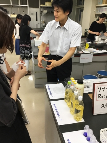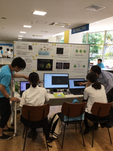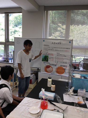 各研究室所属の学部4年生が主体となり、高校生にもわかりやすく丁寧な説明で実験を教えていました。