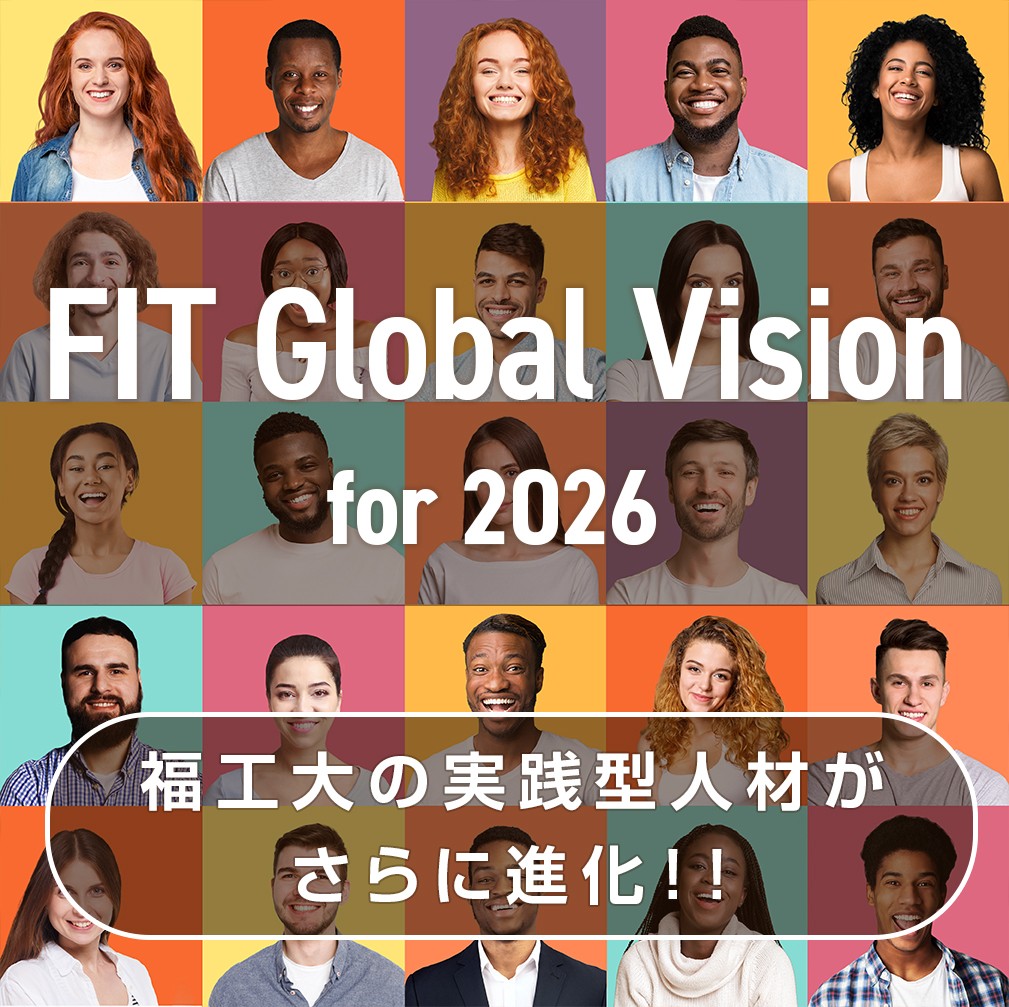 この度、グローバル化を更に促進しつつ、本学が掲げる「教育理念」および「育成すべき人材像」を具現化するために、「福岡工業大学」として60周年の節目である2026年に向けて、教職員が一丸となって目指すべき指針を「FIT Global Vision for 2026」として設定しました。
