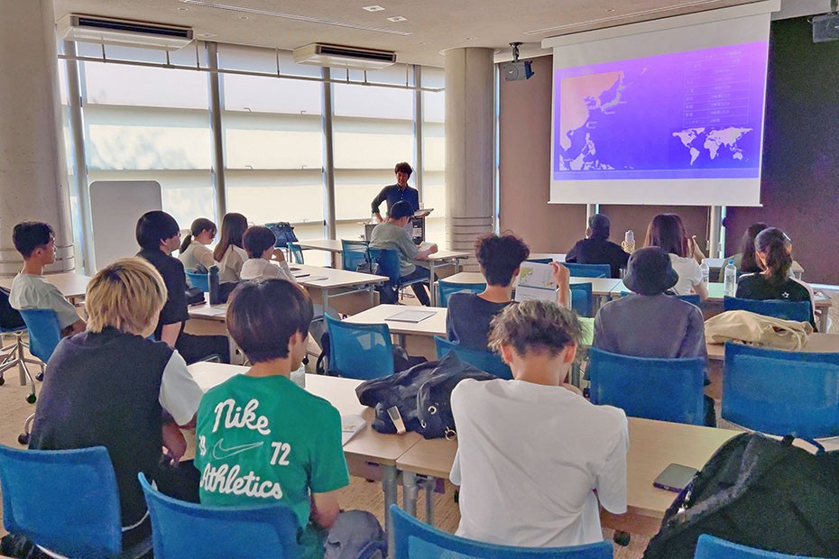 研修の成果は、社会環境学部の講義「社会環境学Ⅱ」にて、1年生約220名の前で発表。台湾と日本の混成グループが、九州各地のコンテンツ・ツーリズムを活用した地域振興策や、両国の文化的な違いについて発表し、学びを共有しました。