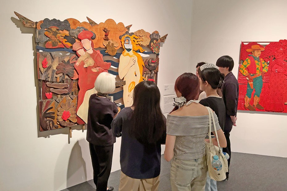 博多港や北九州市漫画ミュージアム、福岡アジア美術館などを訪問し、地域資源とコンテンツの関係性を体感。さらに、「進撃の巨人」や「鬼滅の刃」の聖地とされるスポットも巡り、作品が地域振興に果たす役割について理解を深めました。また、福岡アジア美術館では、学芸員の佐々木氏からアジア近現代美術のコレクションについてレクチャーをうけ、対話型アート鑑賞ワークショップ(VTS:Visual Thinking Strategies)を実施しました。