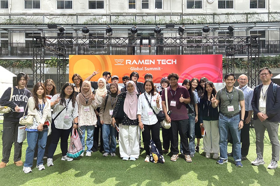 さらに、10月8日(水)にはInnovation & Entrepreneurship学科のEsther Yeo 先生Gabriel Chu先生と学生20名が学生交流会のため本学を訪問しました。社会環境学科の陳准教授による特別講義「ウェブ調査における不注意回答の検出:環境意識調査を事例として」が実施され、学術的な視点からの交流も行われました。また本学学生5名がキャンパスツアーで学内を案内し、お互いの学習環境や文化の違いを学びました。翌9日には、福岡市が主催する「RAMEN TECH 2025-Global Summit」に参加し、福岡市が進めるスタートアップ支援事業についても学びました。