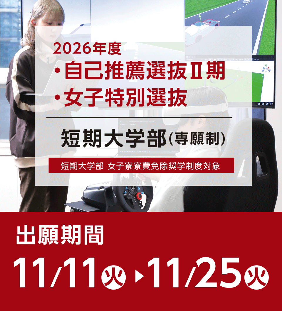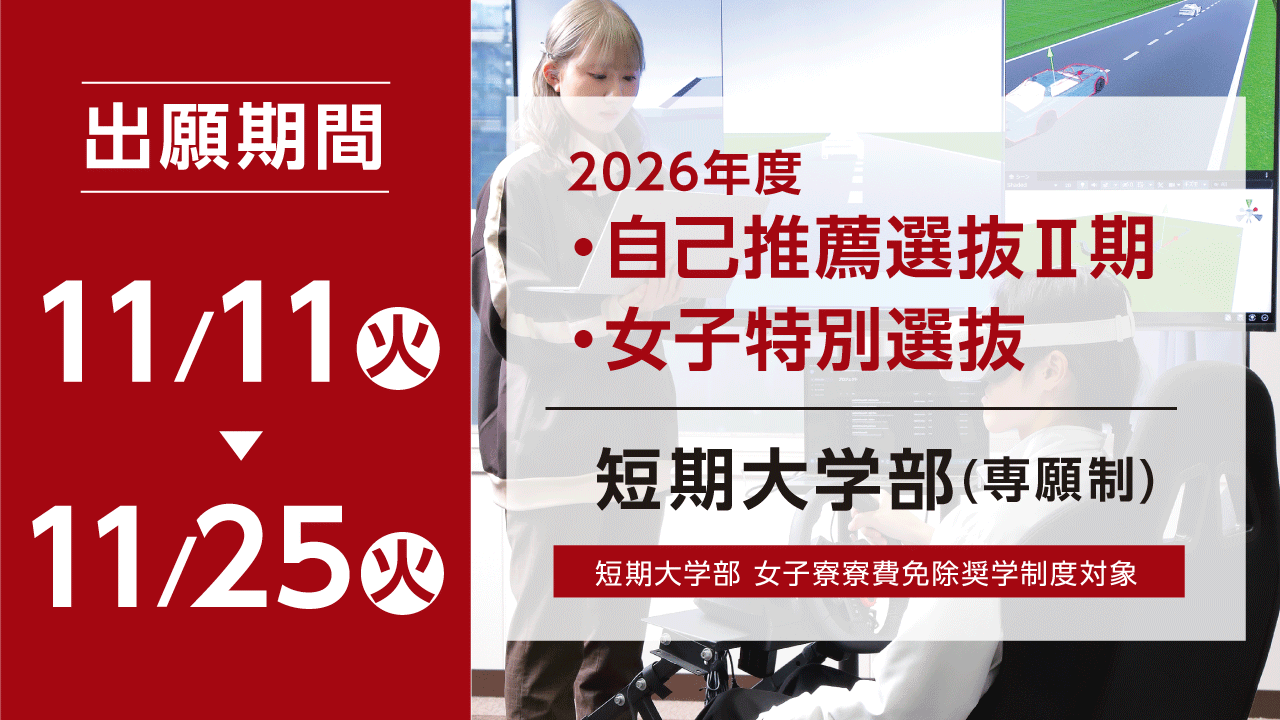 2025年11月11日(火)から、2026年度 短期大学部 自己推薦選抜(Ⅱ期)・女子特別選抜の出願を受け付けます。
