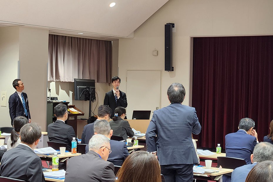 村山学長の挨拶および学園概況の説明に続き、各学部・大学院の担当教員が本学の特色を紹介しました。その後、学生が学部・大学院での学びと研究について発表を行い、発表後には活発な質疑応答が行われ、企業の皆様の高い関心と期待がうかがえました。