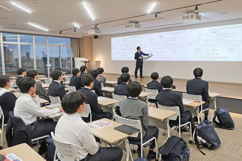福岡工業大学では、本学独自の取組みである「i-STEAM」教育(STEAM教育にInformation(情報)を加えたもの)を行っています。この課外活動において、9月から開始された前半のテーマ(Unityを用いた自動運転自動車開発、身近なものの科学実験、SDGs達成への取組、ブラシレスモータ制御)と、12月から始まる後半のテーマ(AIプログラミング、デジタルファブリケーション入門、支配方程式の数式処理)の間に位置する重要な節目として、初の試みとなる特別講演が開催されました。特別講演は11月19日(水)、城東高校J-STEPにおいて法政大学理工学部機械工学科の加藤友規教授を講師に迎え、行われました。