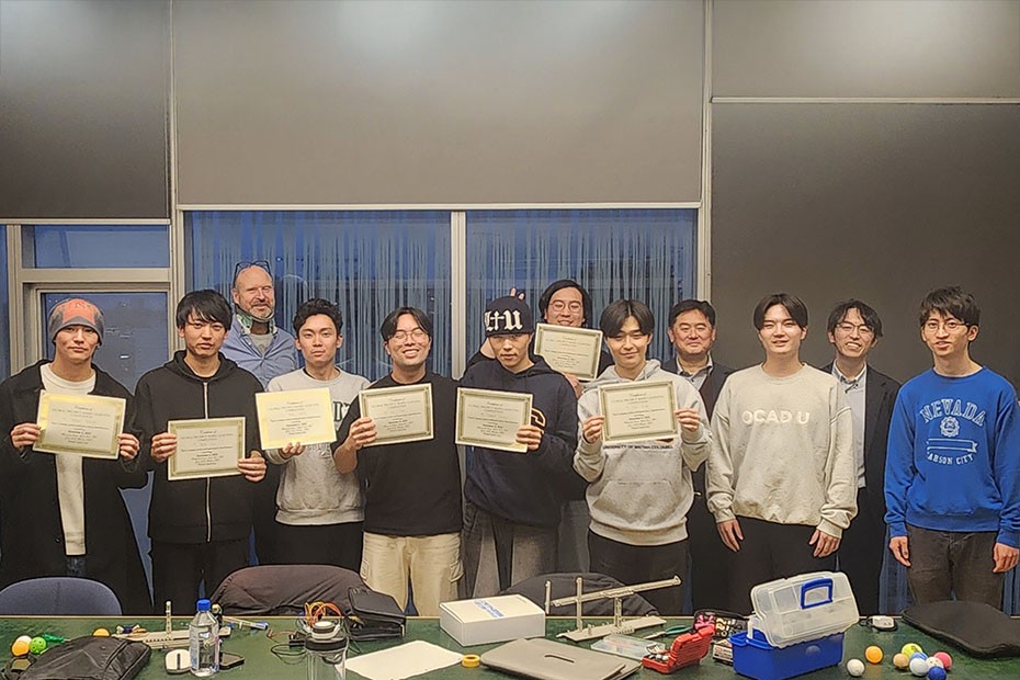 本プログラムには工学部電気工学科の学部生6名が参加し、UBCの学生と共にプロジェクトに取り組みました。プログラムではロボットの制御に関する課題が与えられ、課題の解決に向けてそれぞれのグループでロボットの製作や実験に取り組みました。最終日には成果発表会が実施され、参加学生が英語で発表・質疑応答に臨みました。参加した学生たちはUBCの学生達とチームで取り組むことにより国際的な視野を広げ、電気工学や情報制御技術に関する実践的なスキルを身につける貴重な機会となりました。