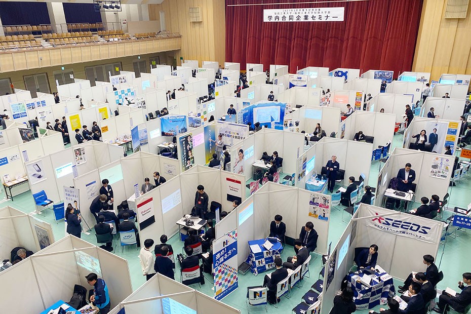 2026年2月12日(木)~ 18日(水)の5日間、学内合同企業セミナーを開催しました。FITアリーナを会場に、対面型で実施し、上場企業・大手中堅企業・地元優良企業など、5日間で348社にご出展いただきました。