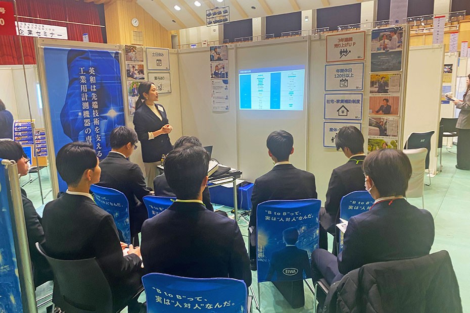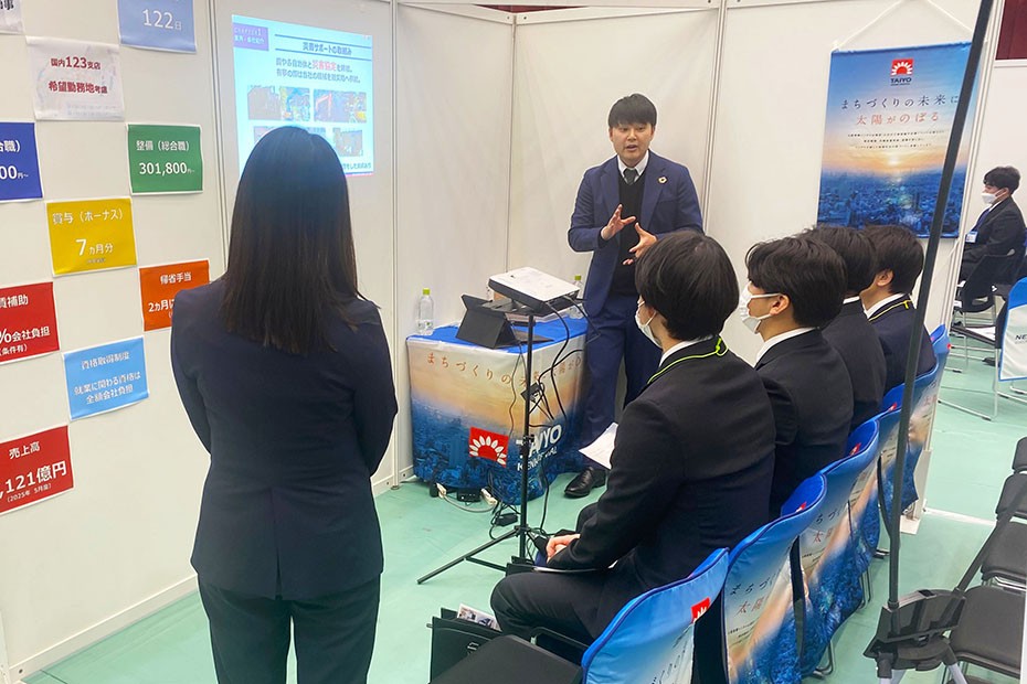 参加企業では、本学卒業生の若手社員が同席し、「現場のリアル」を伝える場面も増え、福工大生の採用に対する強い意欲がうかがえました。就職課では、こうした企業と学生の接点づくりを通じて、学生一人ひとりの希望に沿った就職先の決定につながるよう、寄り添った支援を行っています。