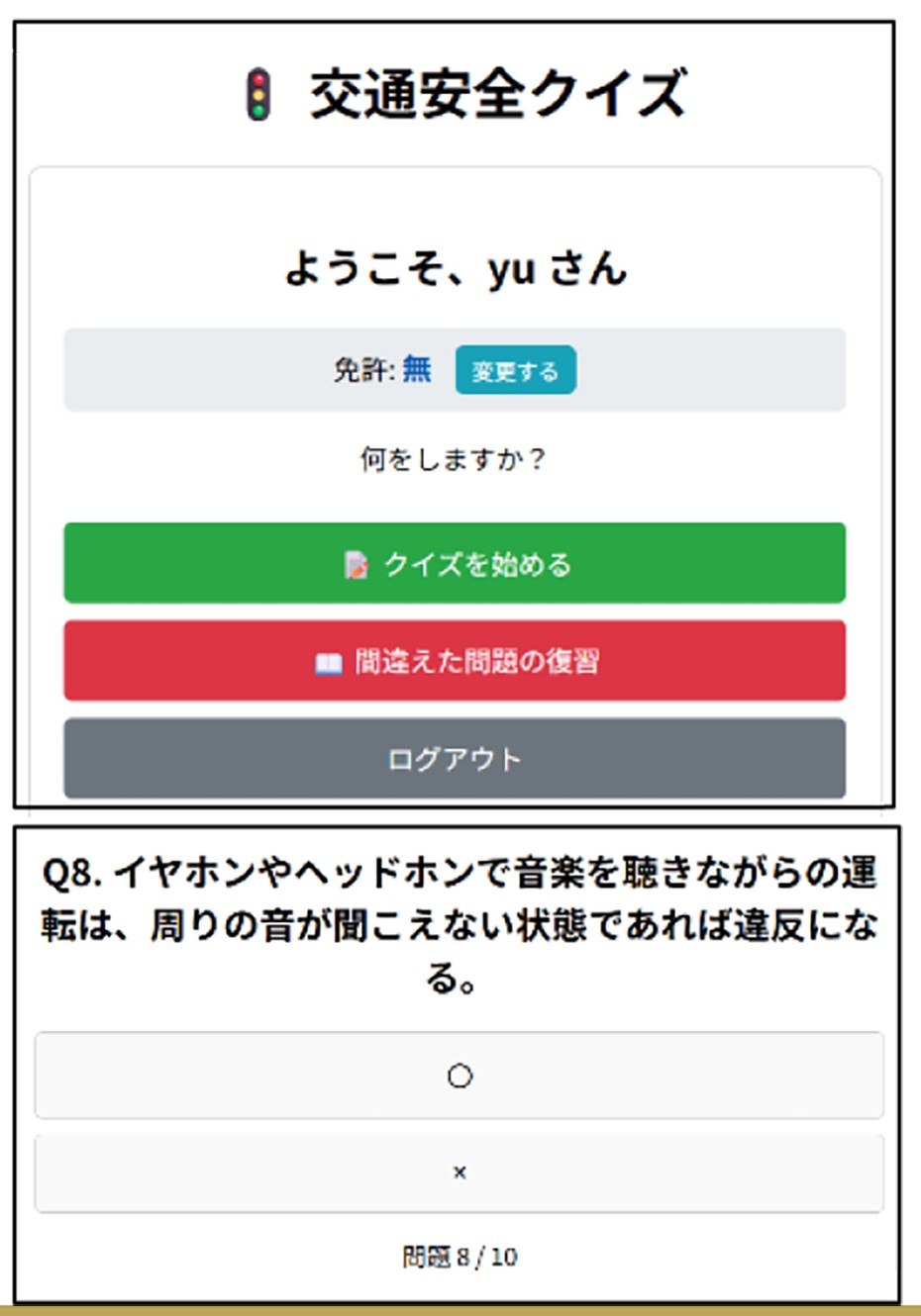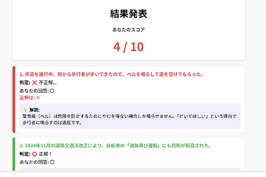 交通安全クイズアプリ (目的:交通事故の減少や安全意識の向上) |