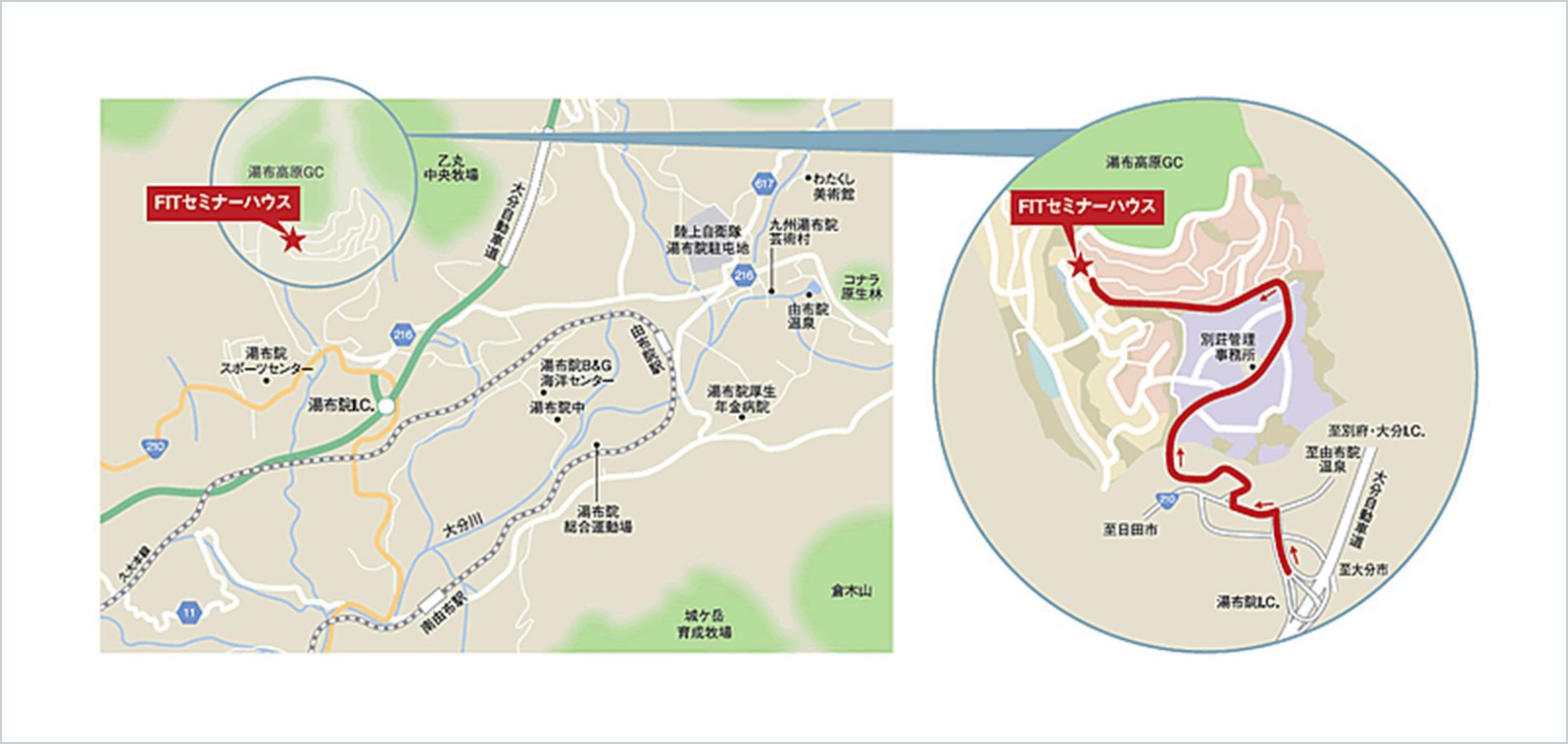 FITセミナーハウス FITセミナーハウス 交通アクセス 〒879-5114大分県由布市湯布院町川北894-78TEL:0977-75-8383 自動車によるアクセス 福岡から約2時間 電車によるアクセス JR由布院駅から車で約10分 GoogleMAP 大きな地図で見る FITセミナーハウスへ戻る 施設 施設トップへ キャンパスマップ 交通アクセス 学内マップ 学内マップ 学内施設の利用時間 A棟 B棟 C棟 D棟 E棟 F棟 α棟 本部棟 施設・設備データ 校舎配置図 学内施設の利用時間 キャンパスリニューアルについて 教育施設 教育施設一覧 情報基盤センター 情報基盤センター(ICT活用共同利用施設) 図書館 社会連携センター モノづくりセンター 学習支援センター 音とモノづくりの歴史資料館 工作センター アクティブ・ラーニング施設 学内資格取得支援講座(エクステンションセンター) 総合メディアセンター【短大】 Global Student Lounge 課外施設 課外施設一覧 FITアリーナ FITホール FIT BBQ 塩浜総合グラウンド(FITスタジアム) 新宮総合グラウンド FITセミナーハウス FITセミナーハウス FITセミナーハウス 施設案内 FITセミナーハウス 利用案内 FITセミナーハウス 交通アクセス FITセミナーハウス 予約受付・お問い合わせ 生活施設 利便施設 学食 学生寮 TOP 施設 課外施設 FITセミナーハウス FITセミナーハウス 交通アクセス