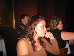 下の左の写真がキム・ナリーのパールズでのステージです。右の写真の若い女性は、2005年当時社会環境学部の3年生だった當山武子さんです。彼女は本学高校・大学を通してブラバン特待生のクラリネット奏者だったので、さすがに真剣な表情でキム・ナリー+SFコンテンポラリー・ジャズバンドの演奏を聴いています。このバンドのサキソフォンはアルト奏者もテナー奏者も大変うまく、クラリネットの彼女は得るところがあったと思います。それで真剣に聞いていたのでしょう。キムのステージ写真をクリックすると彼女のホームページ窓が開きます。