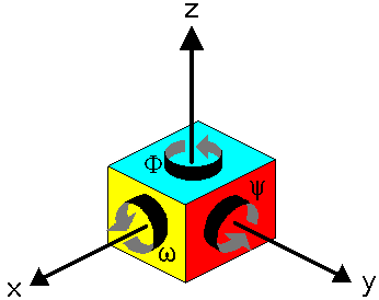 この場合,回転に対して3自由度を持つといいます. このように,空間上で剛体の位置を定義するためには6つの座標系が必要です.
